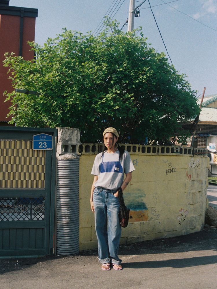 티셔츠 앞면에 댄싱그랜마 라벨이 스티치 되어 포인트를 줍니다.