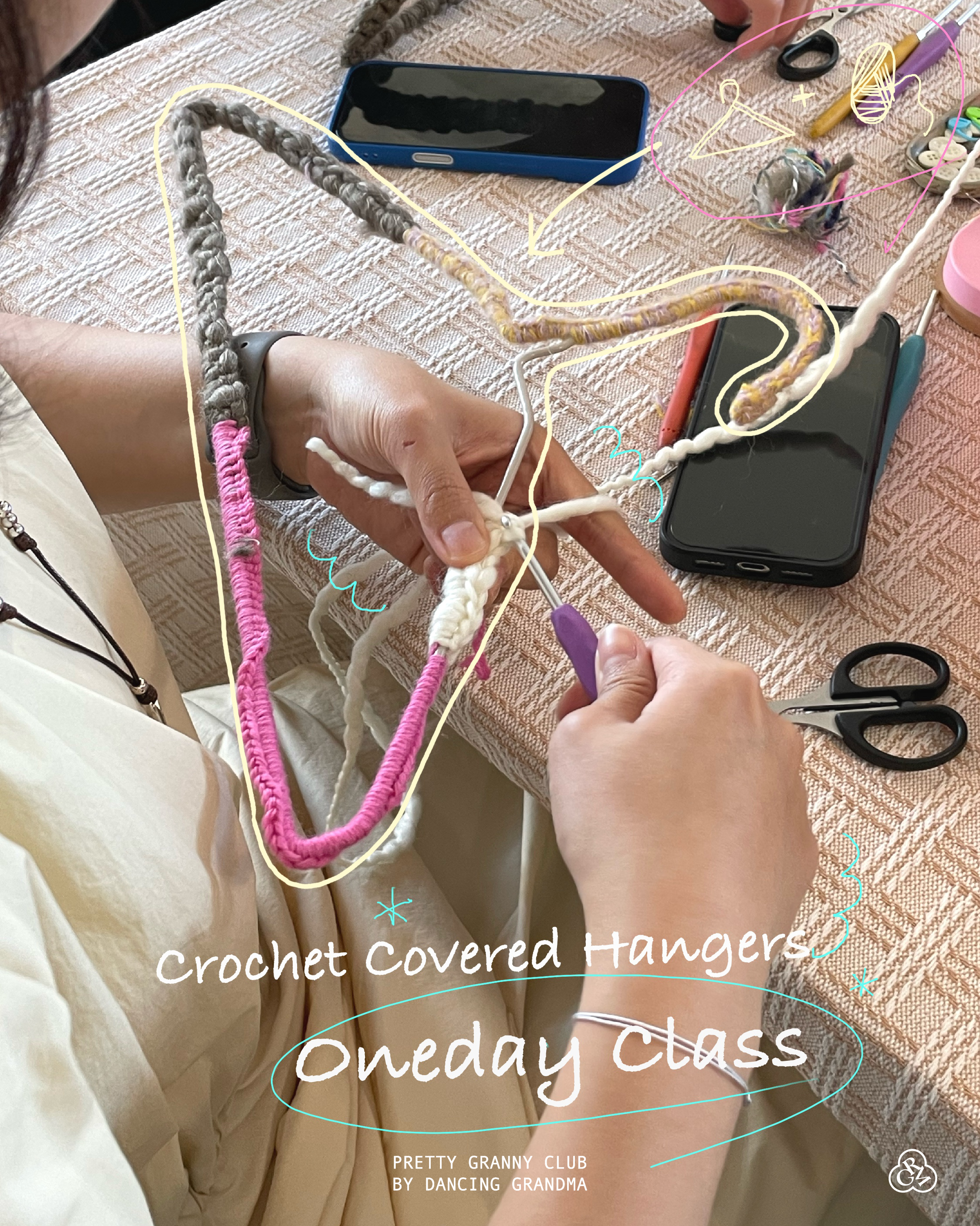 프리티 그래니 클럽의 옷걸이 크로셰 커버 원데이 클래스입니다.
