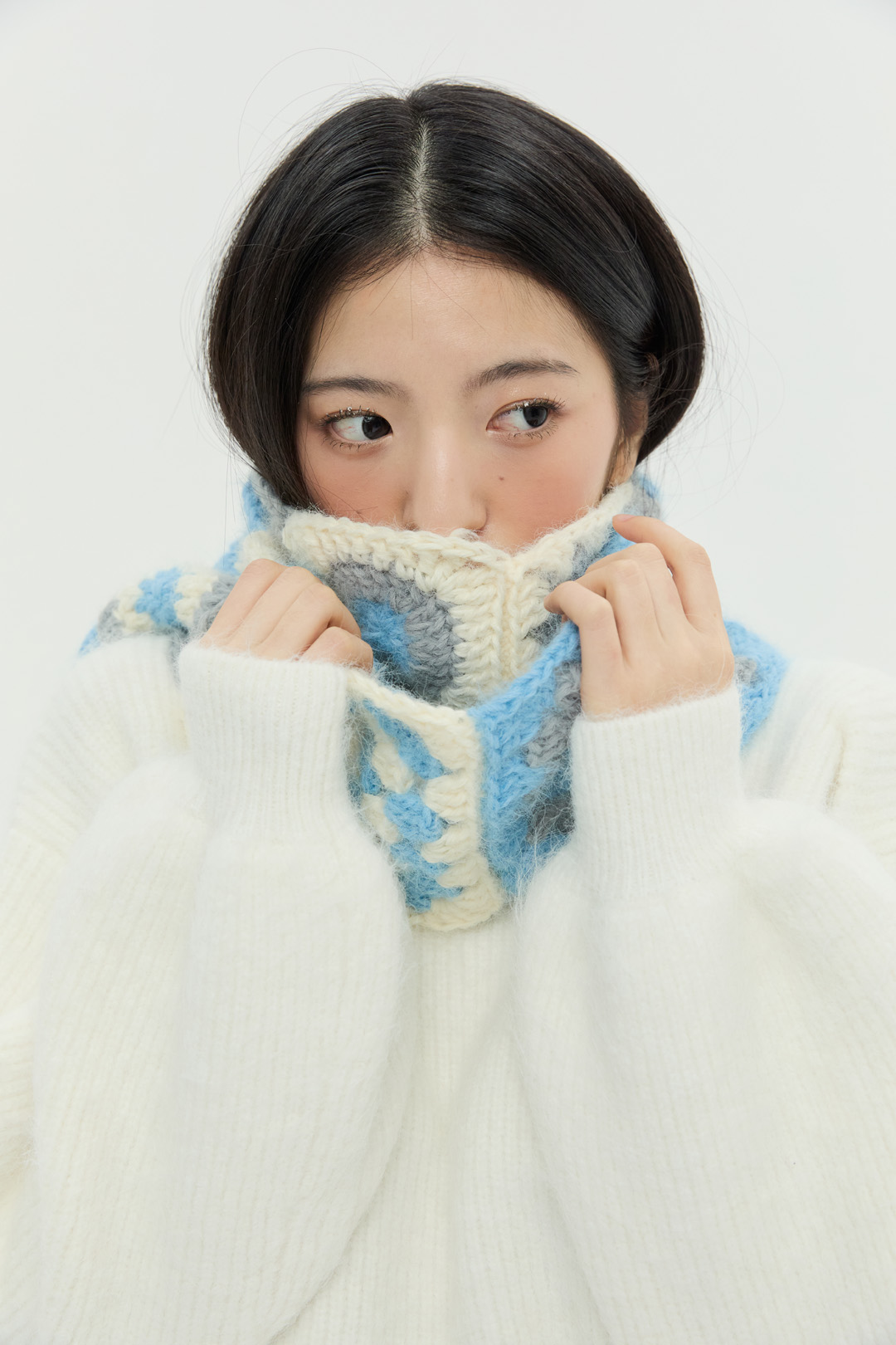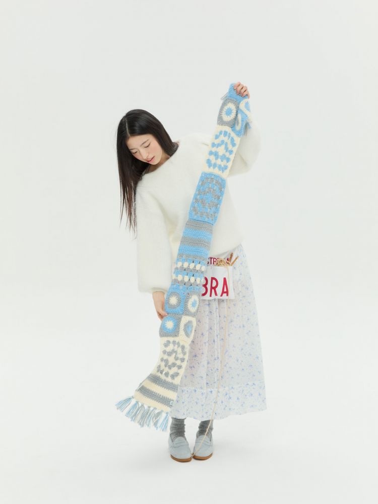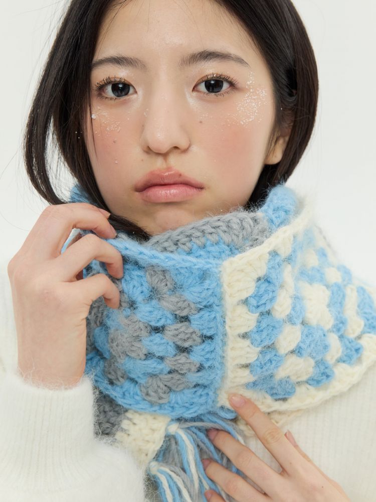 다양한 그래니 패턴을 활용한 '그래니 플러피 머플러'입니다.