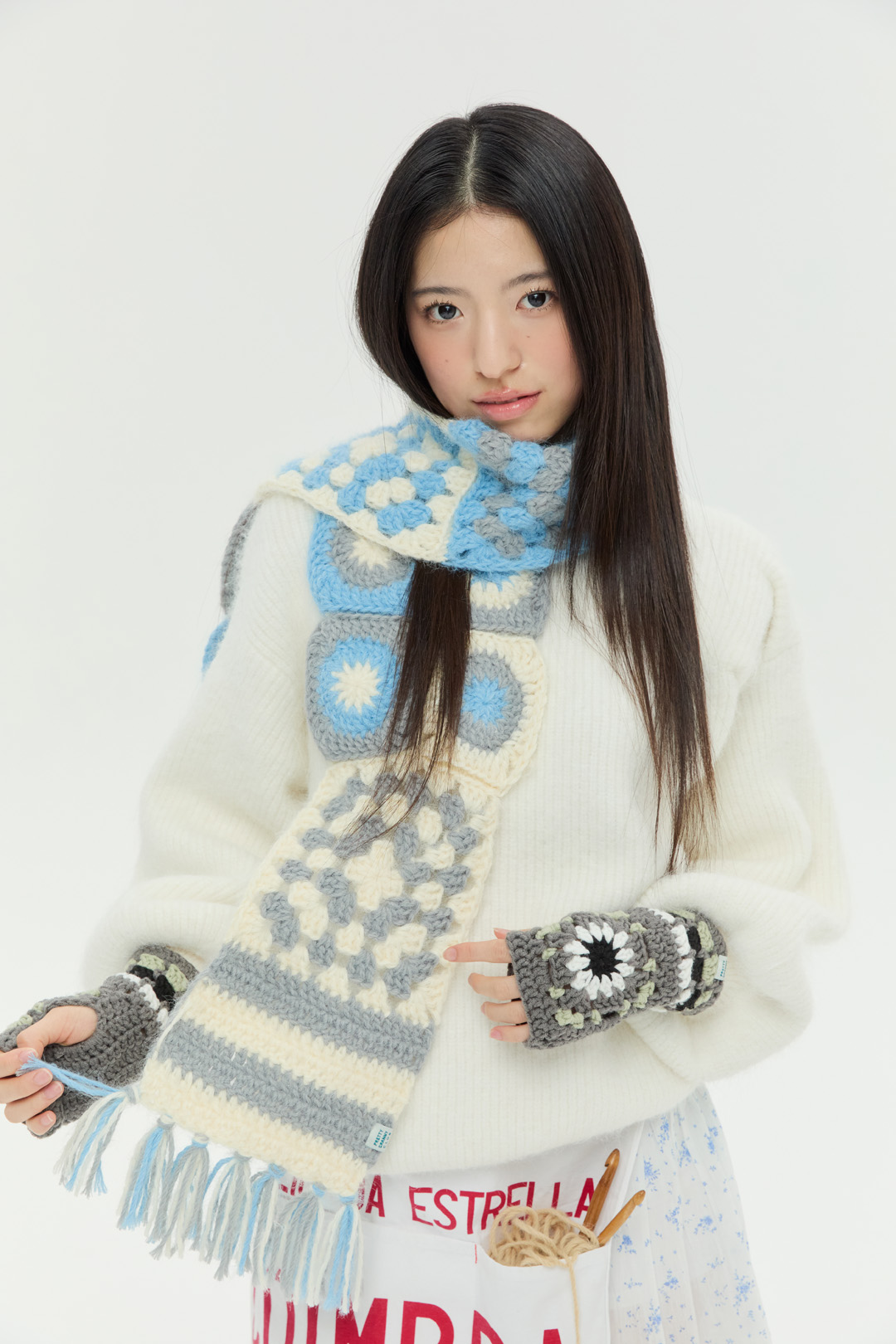 *나일론, 아크릴, 폴리에스터 믹스 실이 포함되어 있습니다.