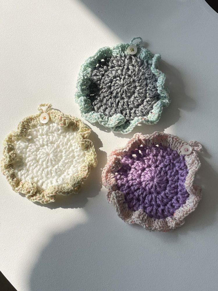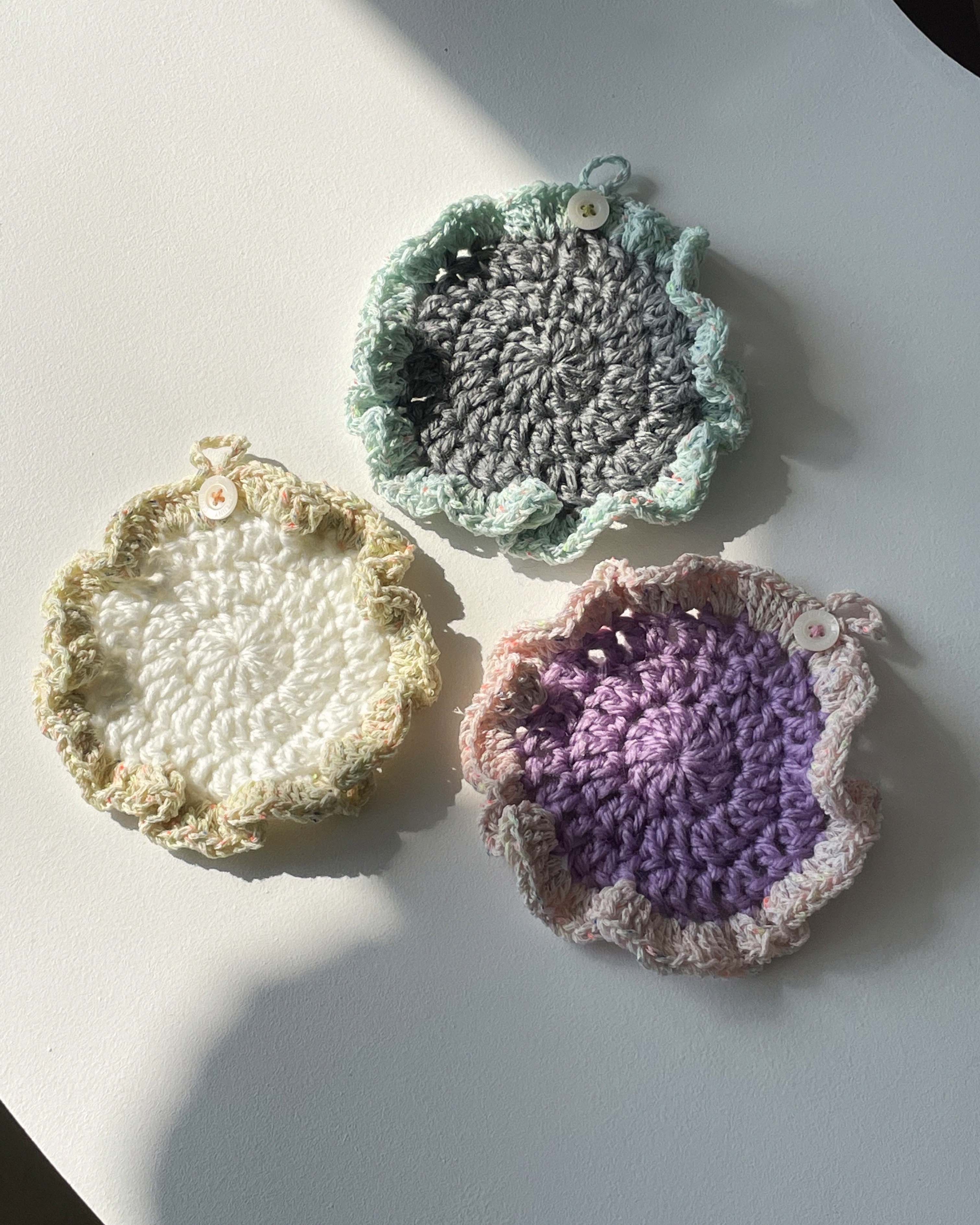 가장자리에 러블리한 러플 모양으로 디자인 된 러플 코스터 키트입니다.