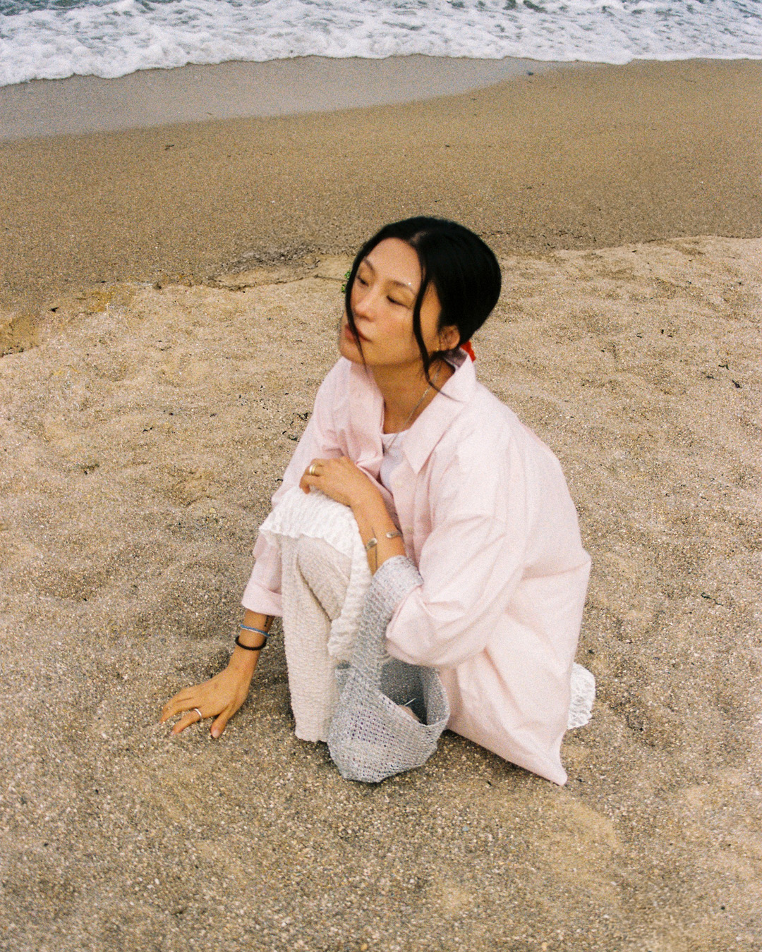 여름날 어울리는 실인 메탈릭 실버, 메탈릭 블랙 두 가지의 컬러로 구성된 '볼 네트 백'은