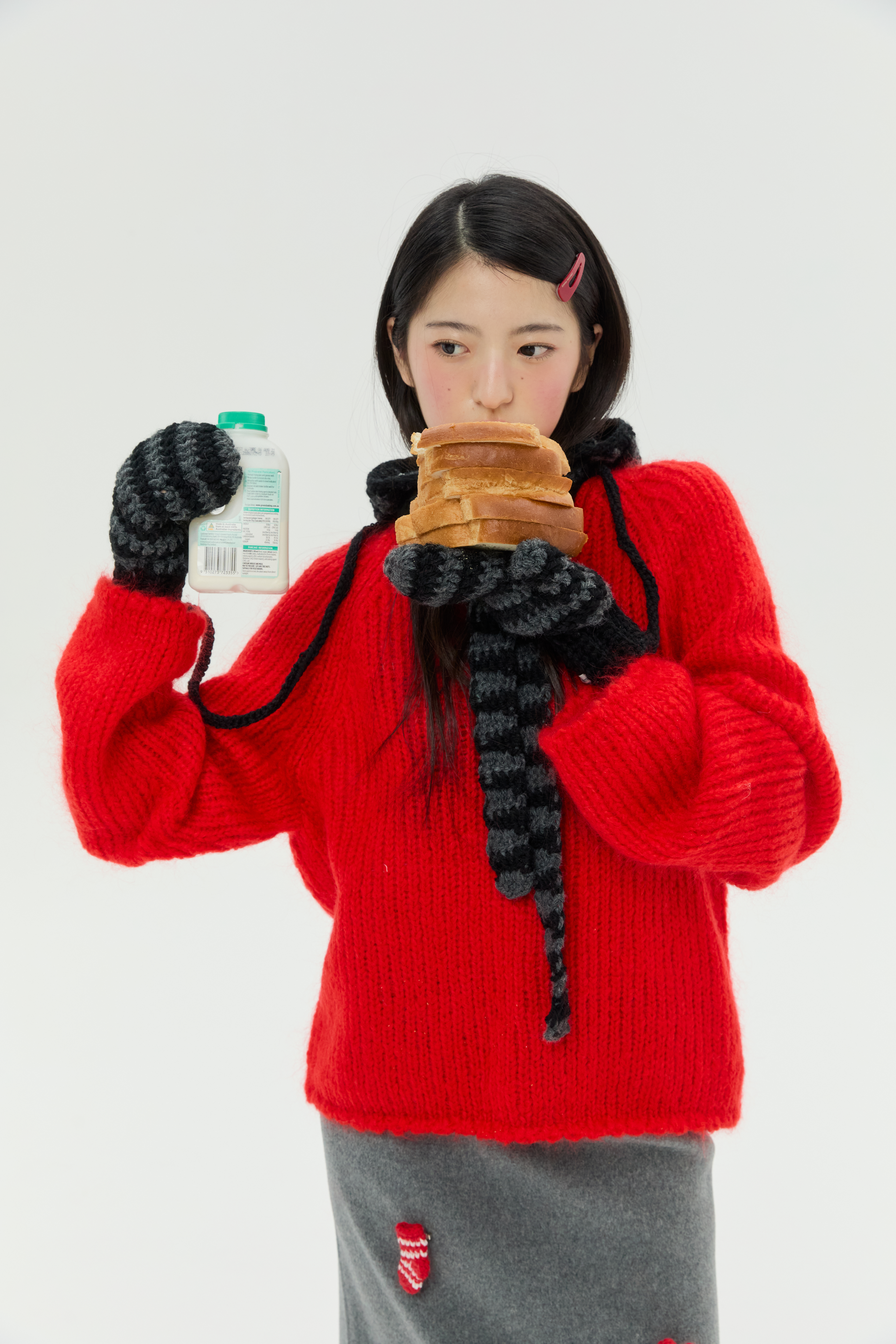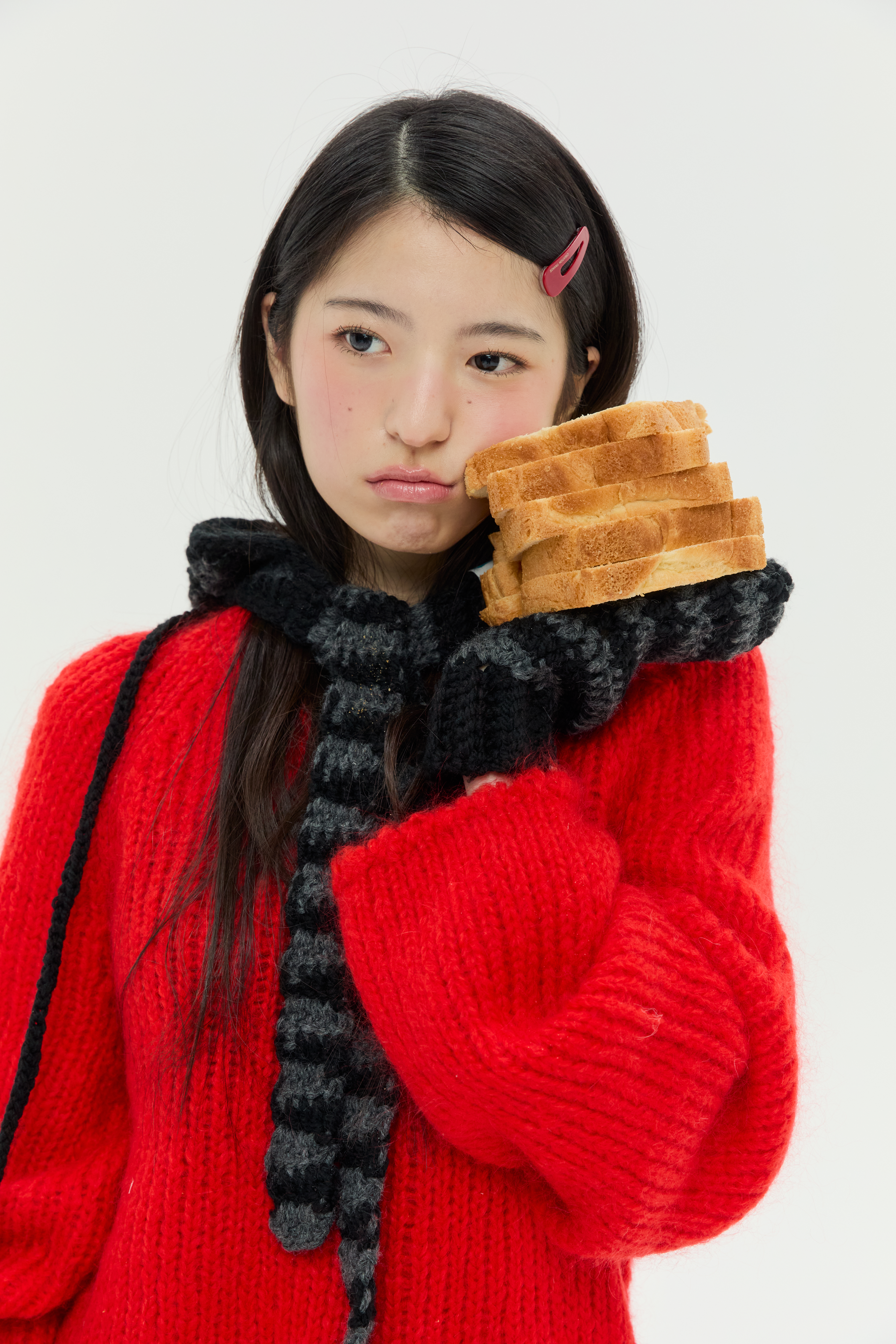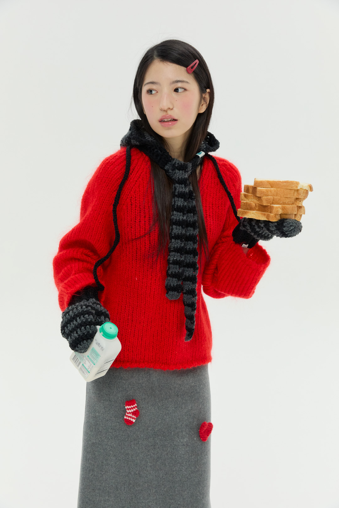 스키니 머플러로 활용할 수 있는 스트랩은 길이를 자유롭게 제작할 수 있어 앞쪽으로 길게 풀거나 묶어 스타일링할 수 있으며, 두꺼운 아우터 위에 후드를 착용한 것처럼 포인트를 줄 수 있습니다.
