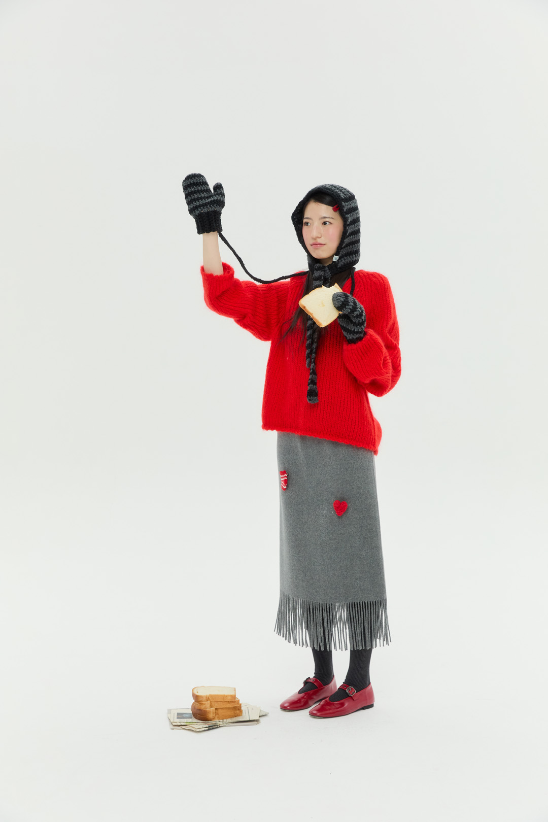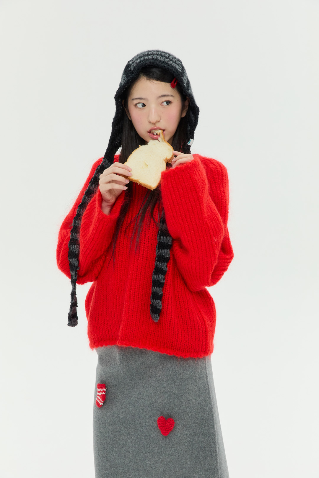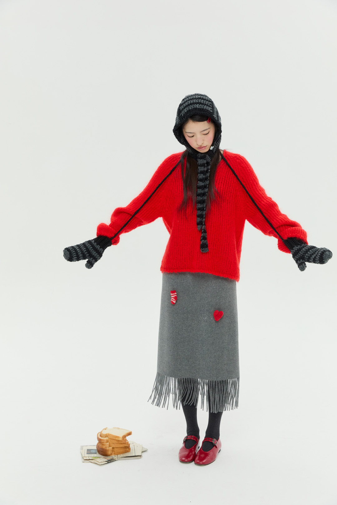도톰하고 따뜻한 촉감의 실과 컬러 배색이 특징인 청키 스트라이프 바라클라바 입니다.