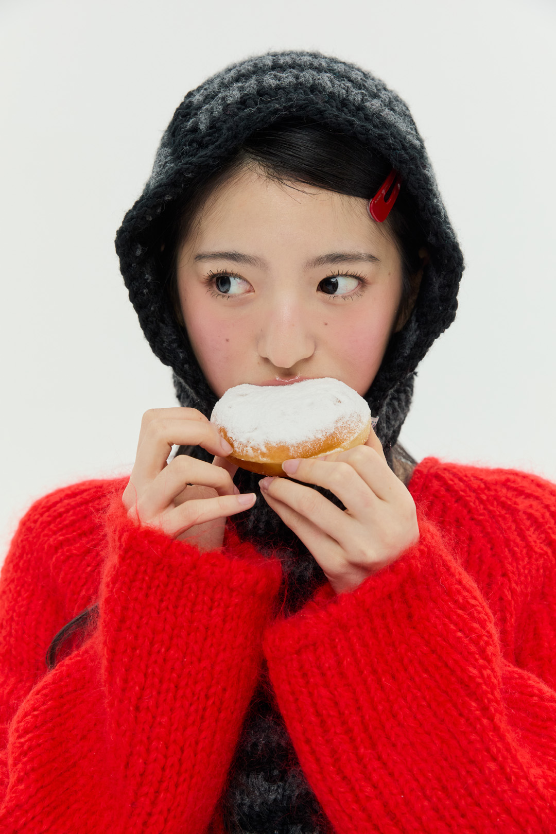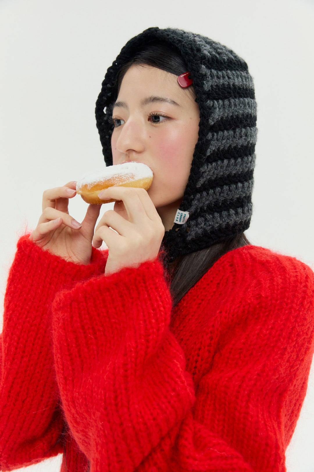 도톰하고 따뜻한 촉감의 실과 컬러 배색이 특징인 '청키 스트라이프 바라클라바'입니다.