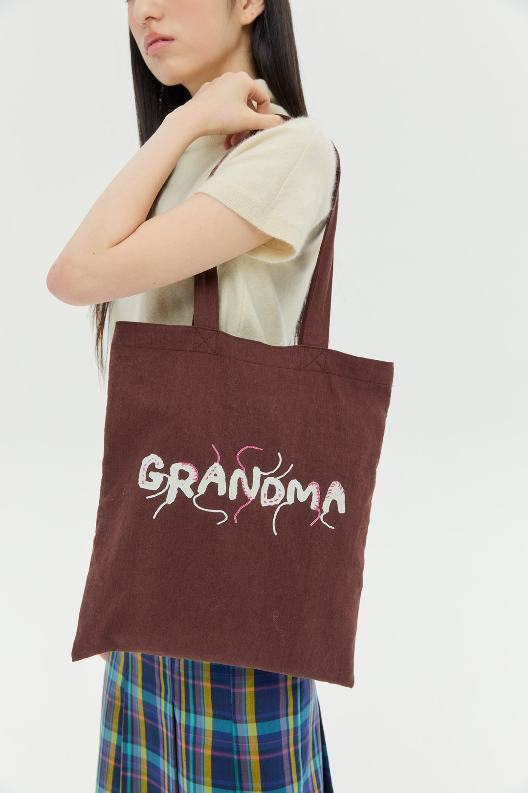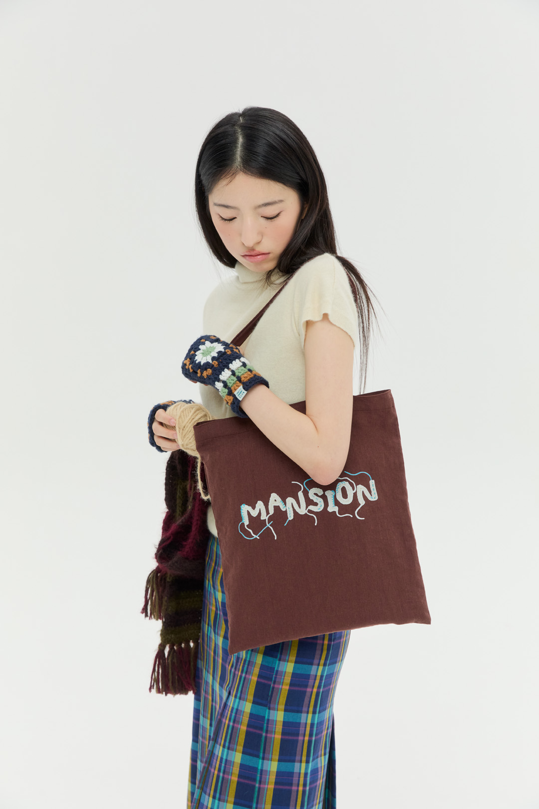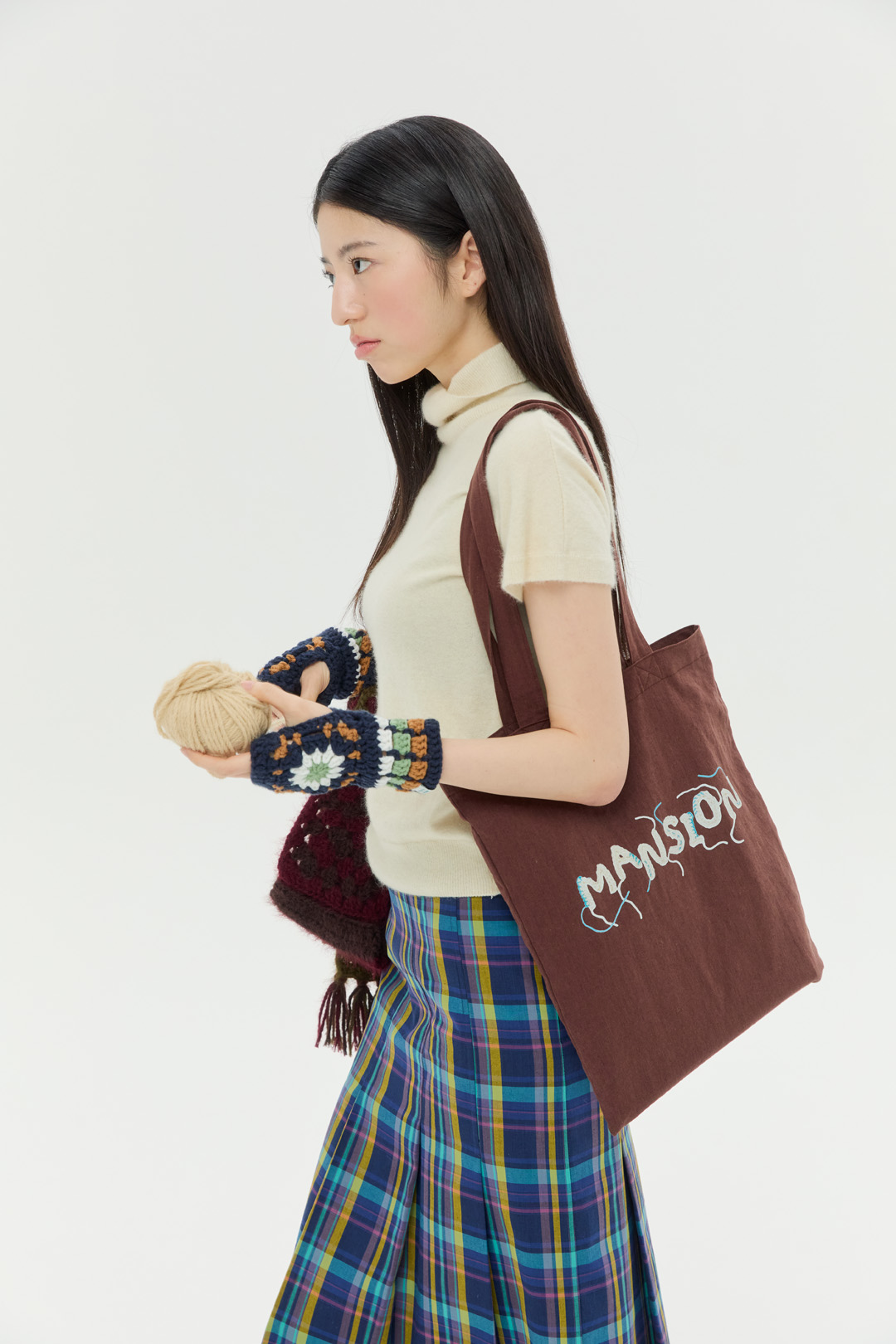 크로셰 기법으로 제작한 "DANCING MANSION' 이니셜에 자연스럽게 잘라내지 않은 실 디테일을 가방 앞 뒷면에 프린팅 하였습니다. 가을, 겨울에 어울리는 따뜻한 브라운 컬러의 린넨 소재 에코백이며 니트 혹은 겨울 아우터 위에 예쁘게 스타일링 됩니다.