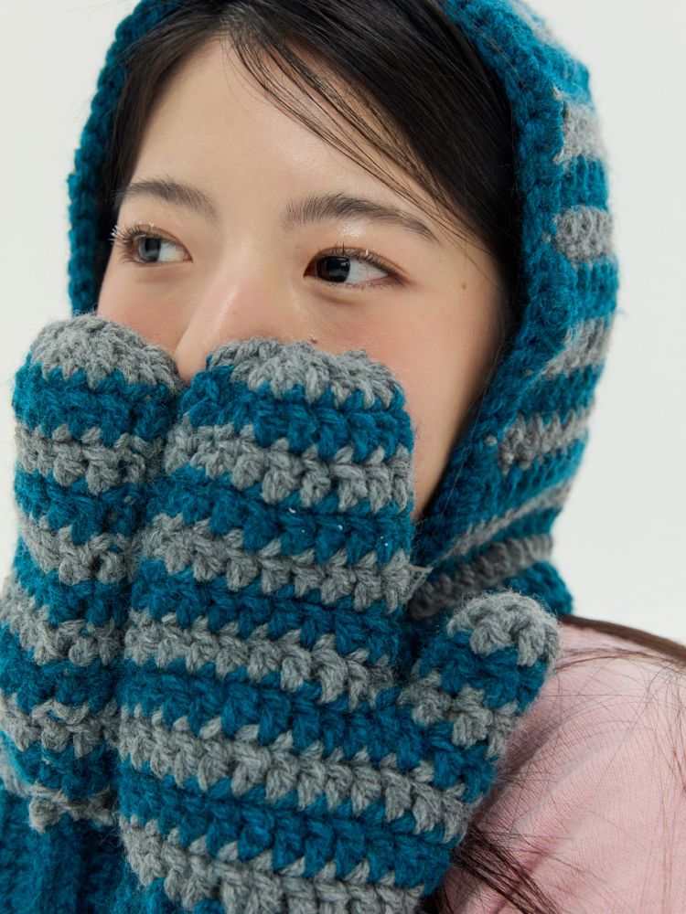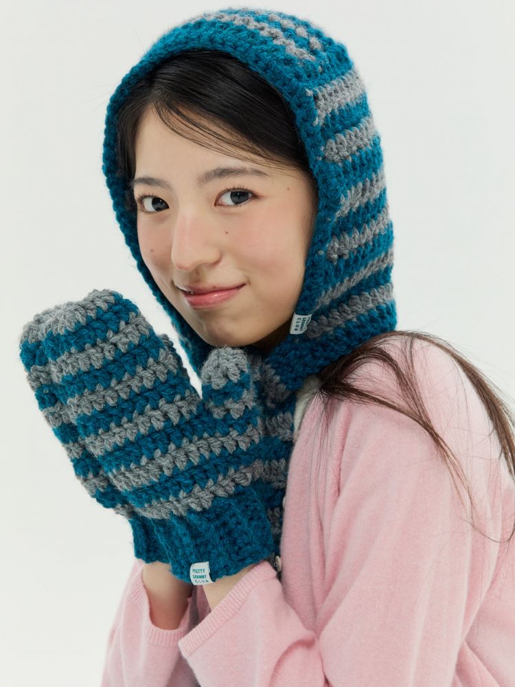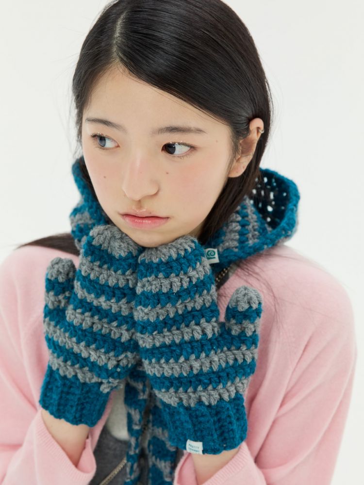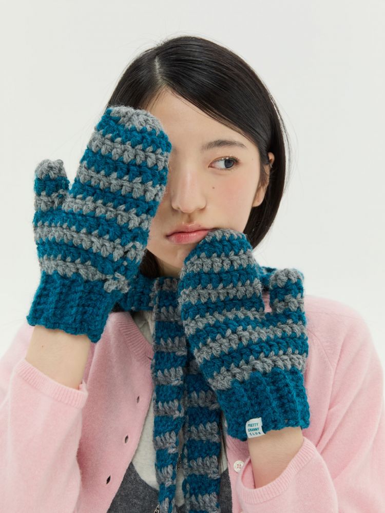 도톰하고 따뜻한 촉감의 실과 컬러 배색이 특징인 '청키 스트라이프 글러브'입니다.