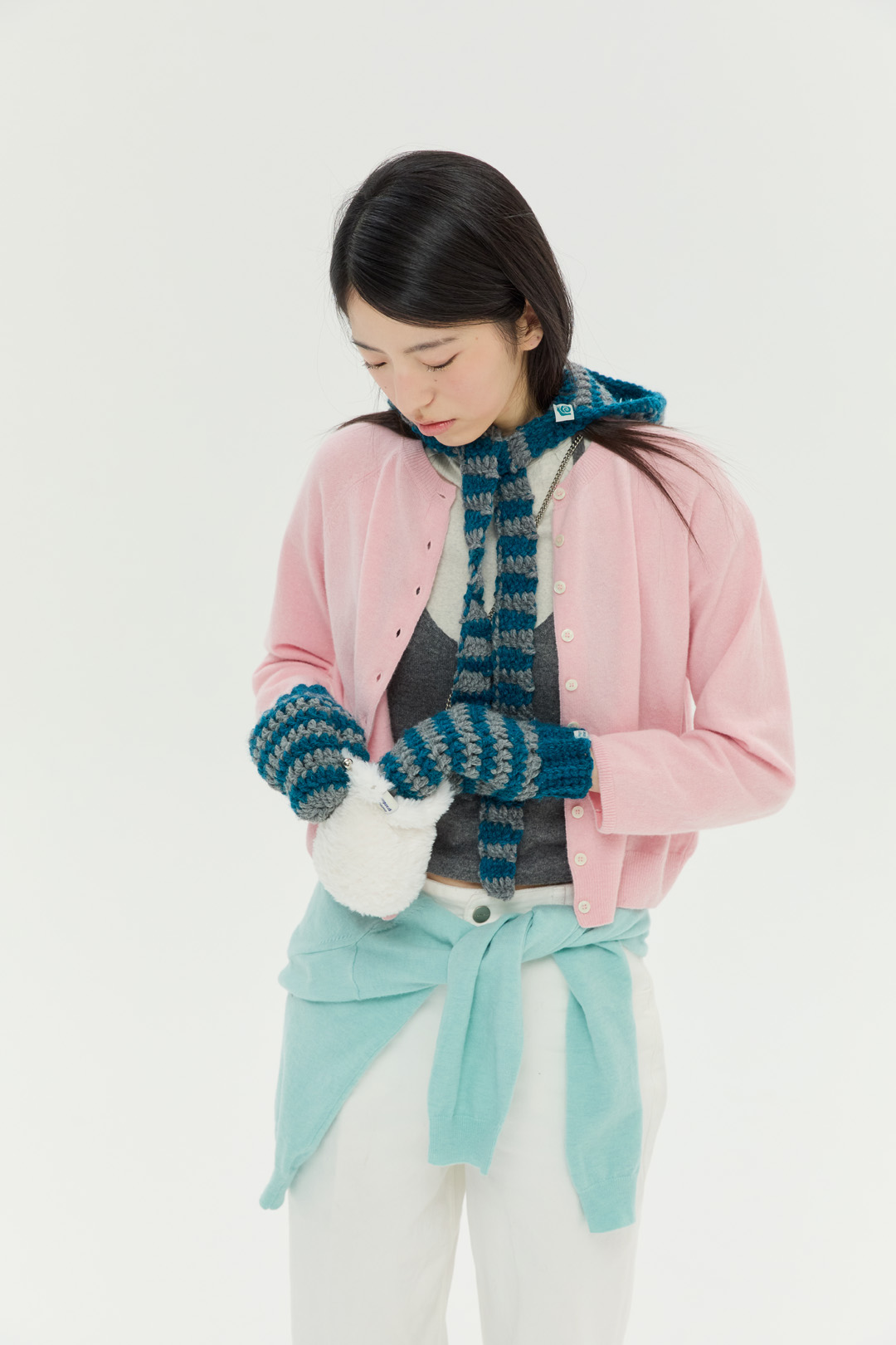 청키한 실로 제작하는 장갑은 더욱 따뜻하고 귀여운 느낌을 주며, 장갑을 연결하는 끈은 자유롭게 선택하여 제작할 수 있습니다.