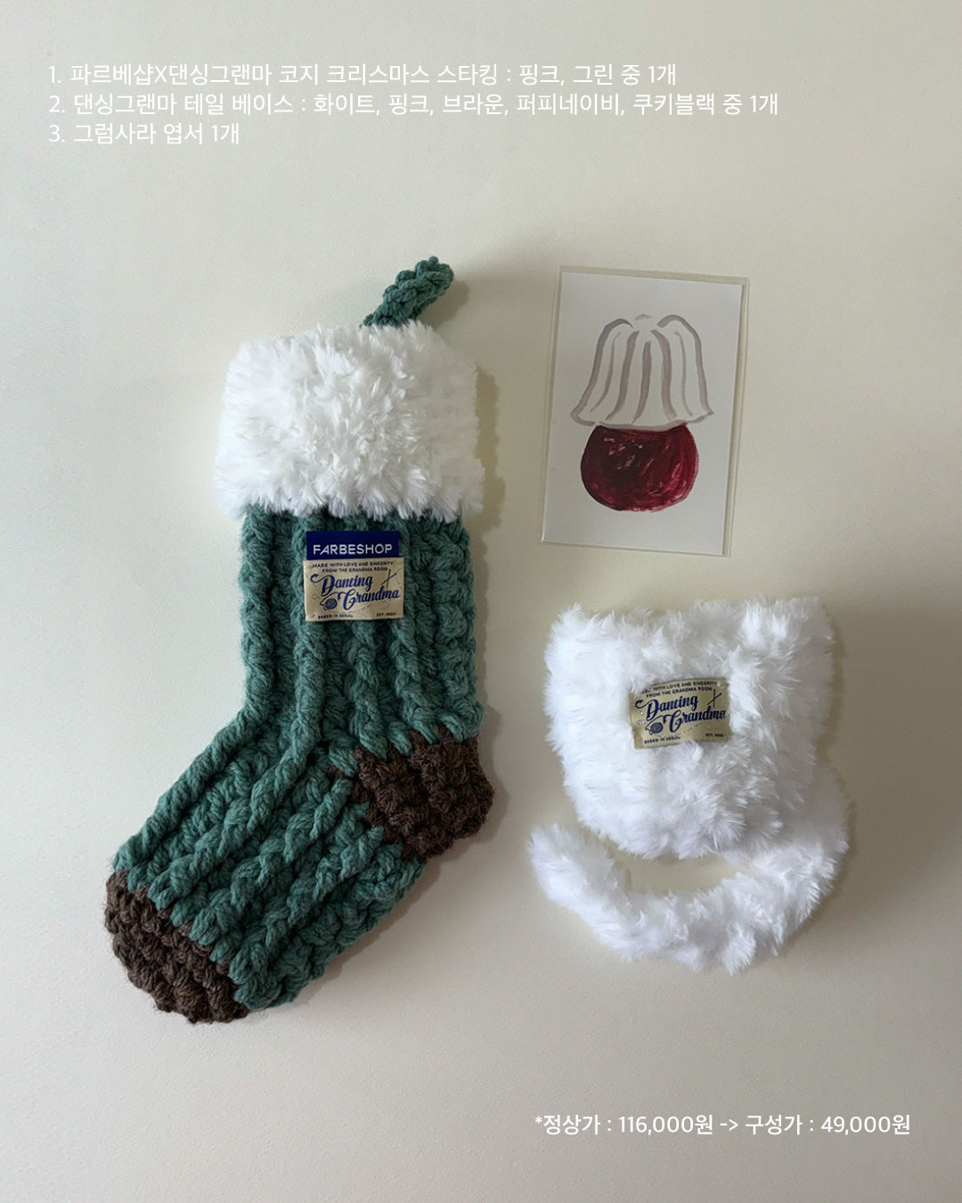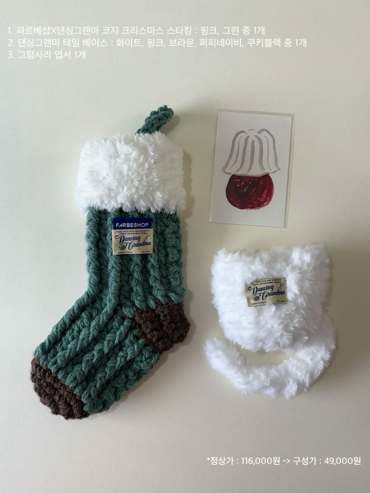 파르베샵X댄싱그랜마의 크래스마스 양말과, 무엇이든 귀엽게 담아줄 댄싱그랜마의 테일 베이스와 함께하세요.