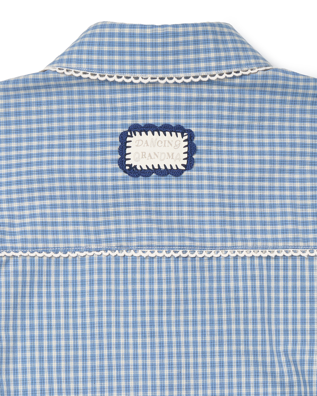 핸드메이드 크로셰 장식의 시즌 라벨이 뒷면에 포인트되는 코튼 셔츠입니다.