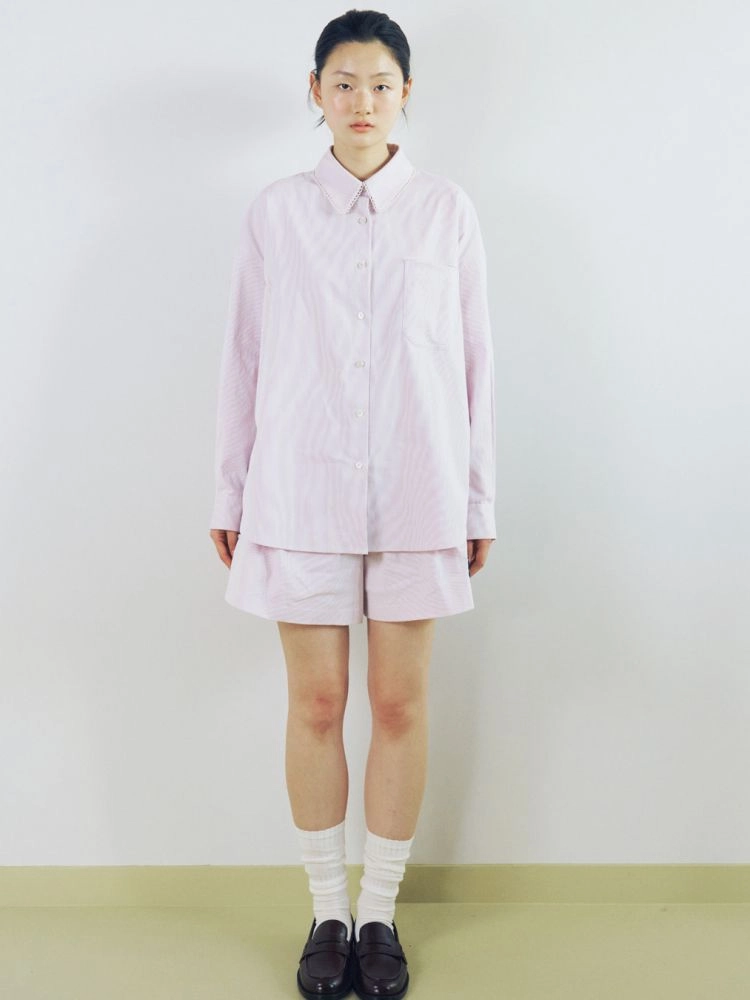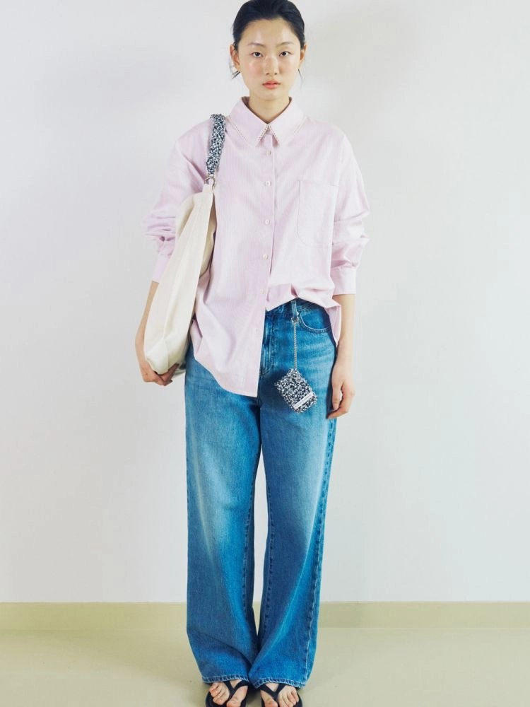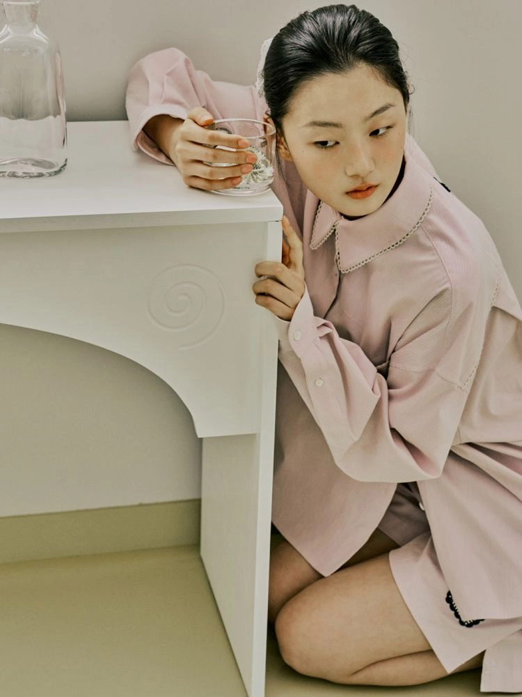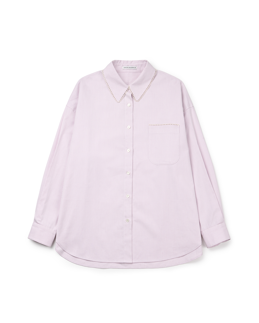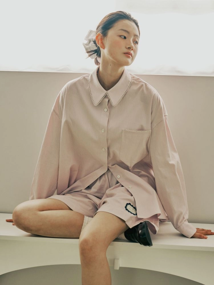 카라, 포켓, 요크에 장식된 작은 생지 레이스 테이프가 은은하게 사랑스러운 무드를 주며, 여유로운 착용감과 깔끔한 실루엣으로 어디든 편하게 스타일링이 가능합니다.