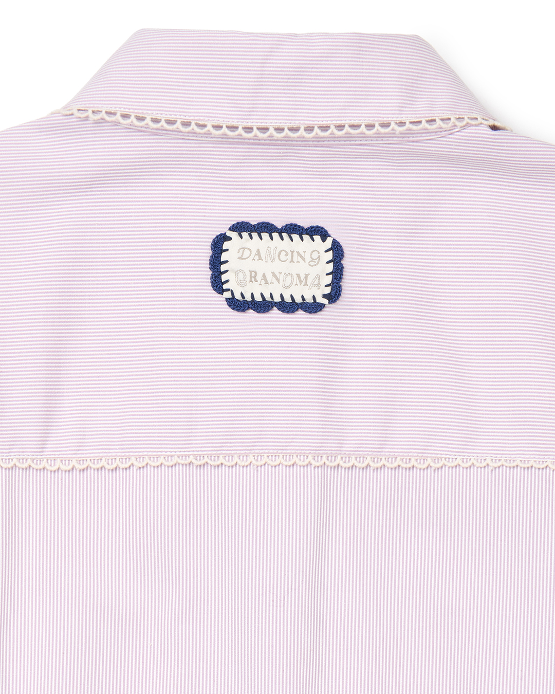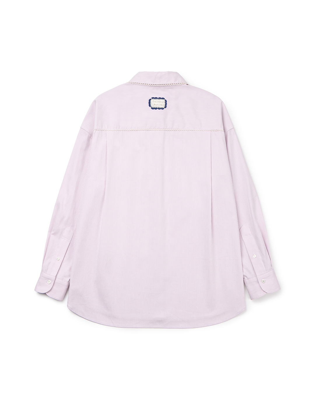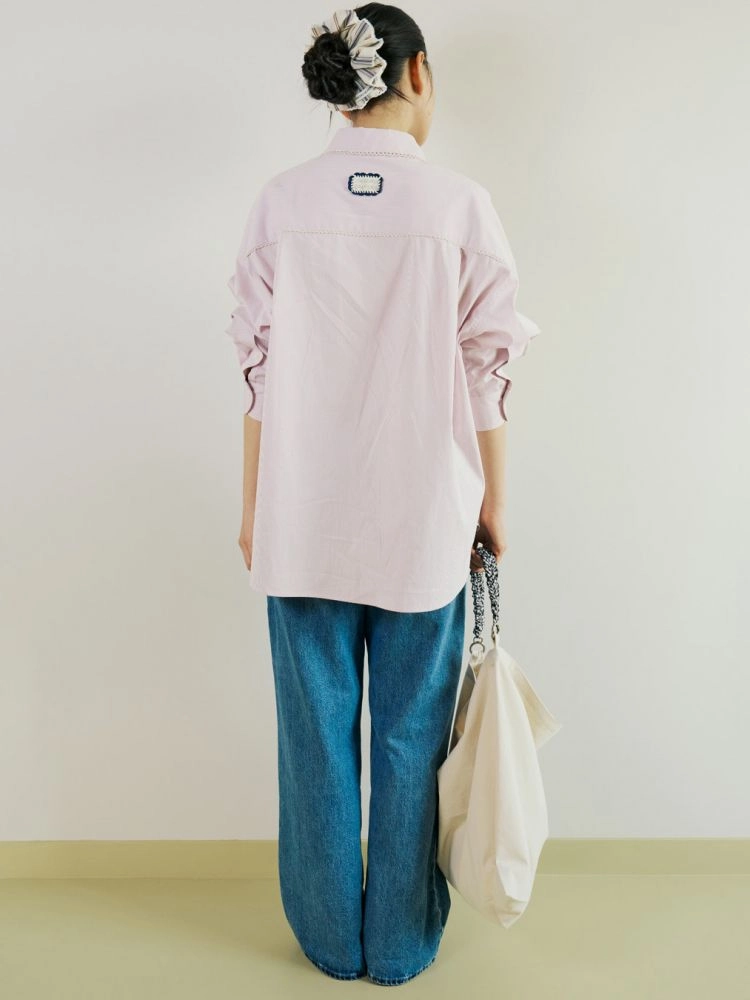 핸드메이드 크로셰 장식의 시즌 라벨이 뒷면에 포인트되는 코튼 셔츠입니다.