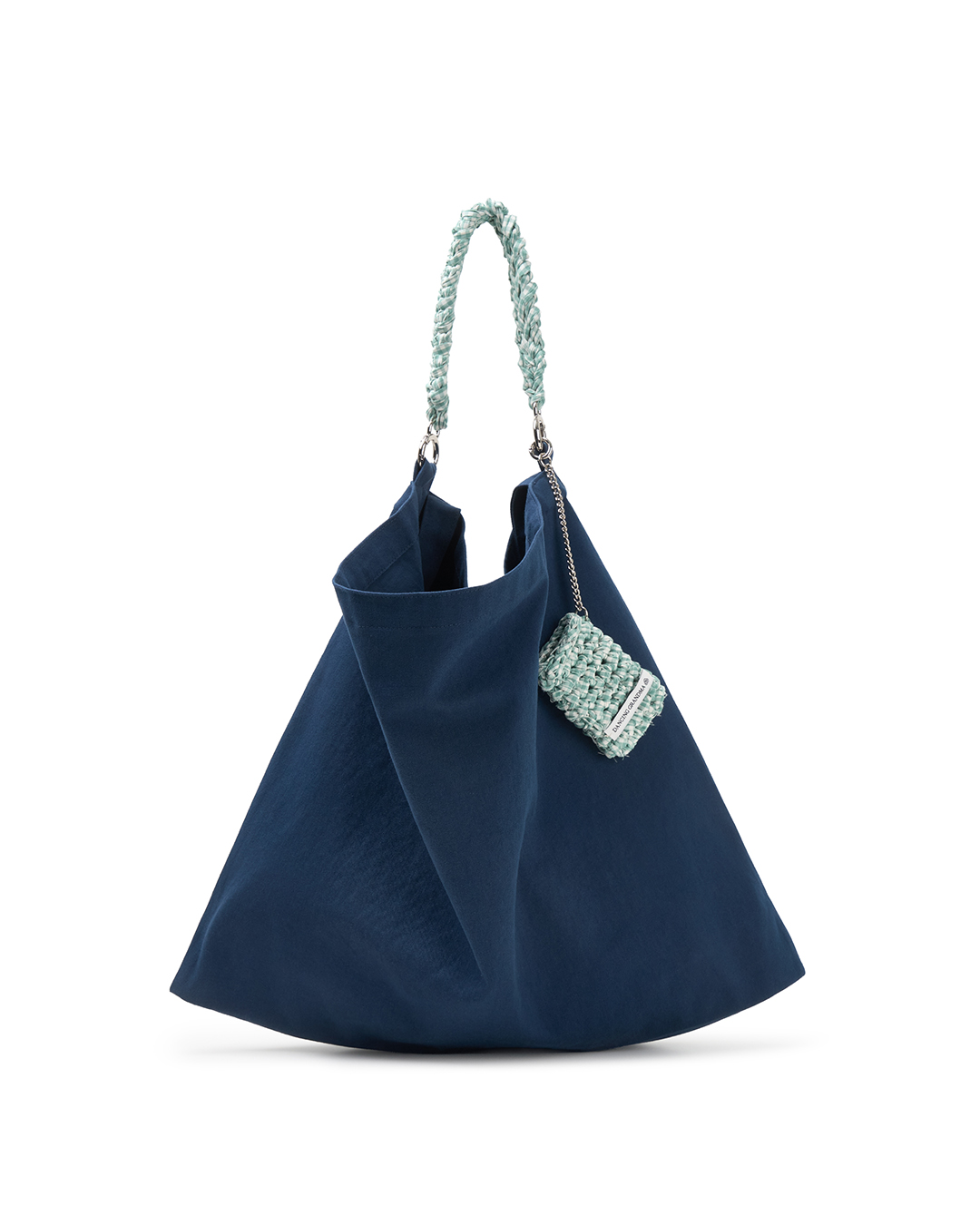 원단을 재단해 만든 실로 뜨개한 핸들은 가방의 포인트가 되어줍니다.
